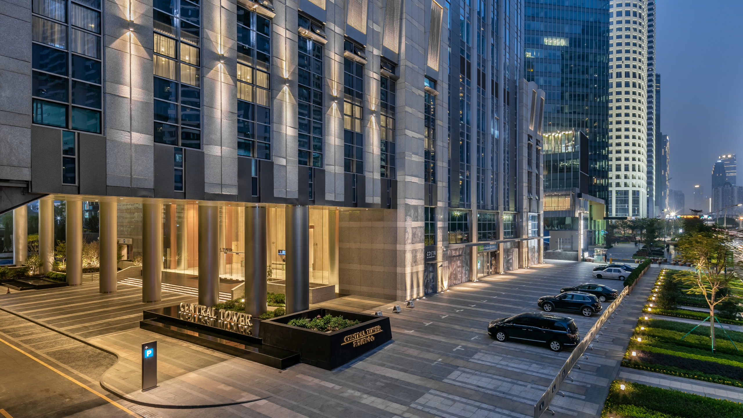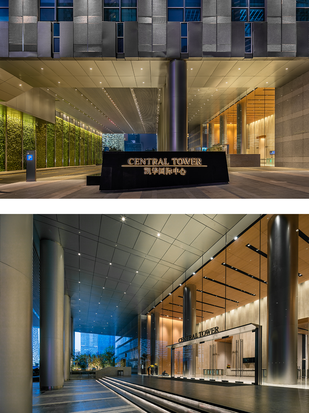 The lobby is equipped with intelligent lighting control, which adjusts lighting effects according to outdoor sunlight conditions and different working hours. The stone used for the reception desk blends seamlessly with the floor. Behind the always-smiling concierge team, two screens broadcast real-time news from Bloomberg Television.