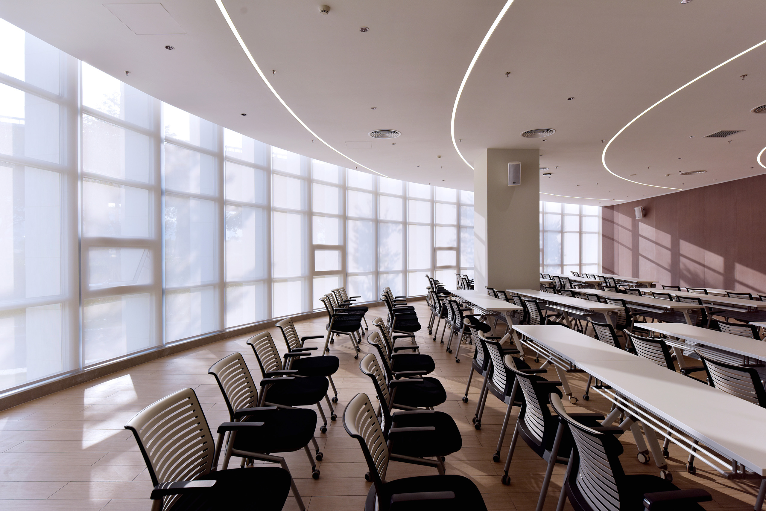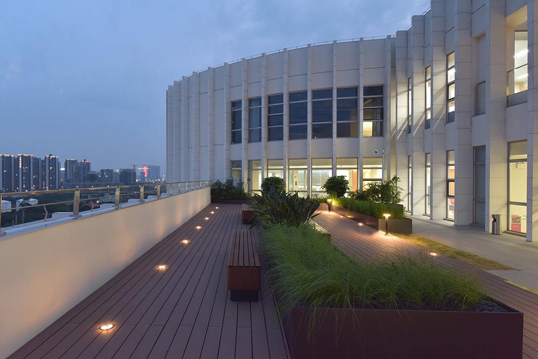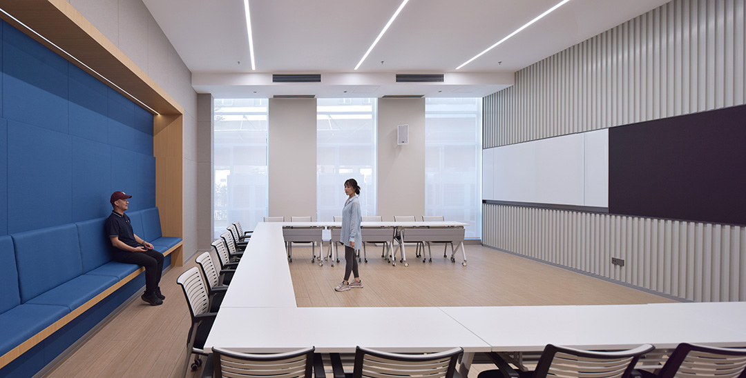 With 11 stories in total, this building features terraced gardens that create an ideal office environment for modern industries. It has an irregular curved floor plan shaped like a dumbbell, and the thoughtful design of terraces and terrace gardens provides the building with wide, open views. In addition to the lobby on the ground floor, the building is vertically organized with diverse functional areas for reception, training and conferences. Floors 2 to 4 are designed as production workshops; the 5th floor houses a staff canteen, a gym and a yoga studio; the 10th floor serves as the R&D office center, while the 11th floor is home to the design center. Webon Headquarters is equipped with state-of-the-art technological facilities, including smart conference rooms, virtual reality equipment and high-speed wireless networks, which not only improve work efficiency but also integrate technology into every space of the building.